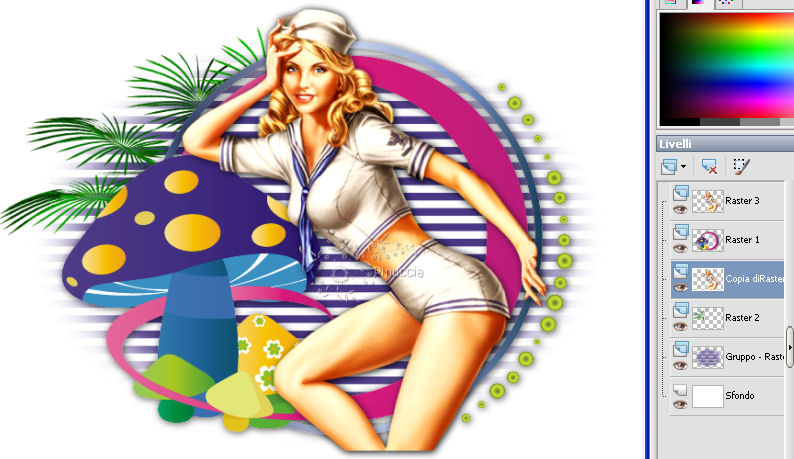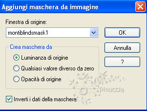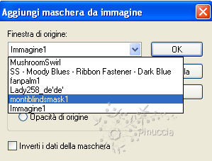 qui puoi trovare qualche risposta ai tuoi dubbi. Se l'argomento che ti interessa non è presente, ti prego di segnalarmelo. Occorrente: Materiale qui Apri tutto il materiale in PSP, compresa la maschera. Apri una nuova immagine BIANCA 700 x 500 pixels. Livelli>Nuovo livello raster. Riempi il livello con un colore scelto dal tube. Il mio #493784.Livelli>Nuovo livello raster>Da maschera. Apri il menu sotto la finestra di origine e vedrai la lista dei files aperti: ![]() Seleziona la maschera montiblindmask, inverti i dati della maschera selezionato. ![]() Livelli>Unisci>Unisci gruppo. Apri Mushroomswirl e vai a Modifica>Copia. Torna al tuo lavoro e vai a Modifica>Incolla come nuovo livello. Effetti>Effetti 3D>Sfalsa ombra, con i seguenti settaggi, colore nero. ![]() Apri fanpalm e vai a Modifica>Copia. Torna al tuo lavoro e vai a Modifica>Incolla come nuovo livello. Spostalo in alto a sinistra.Livelli>Disponi>Sposta giù. Attiva lo strumento Gomma ![]() e cancella la parte di tube all'interno della cornice. ![]() Attiva il livello superiore. Apri il tube della donna e vai a Modifica>Copia. Torna al tuo lavoro e vai a Modifica>Incolla come nuovo livello. Spostalo a destra,in modo che il gomito sia appoggiato al fungo e la mano all'anello blu. ![]() Effetti>Effetti 3D>Sfalsa ombra, con i settaggi precedenti. Livelli>Duplica. Sposta questo livello sotto il livello del fungo. ![]() Attiva il livello superiore e cancella la parte di tube sotto l'anello. ![]() Attiva il livello inferiore del tube e cancella la parte sotto la cornice. ![]() Attiva nuovamente il livello superiore. Apri "SS-MoodyBlues-Ribbon Fastener" e vai a Modifica>Copia. Torna al tuo lavoro e vai a Modifica>Incolla come nuovo livello. Sposta in alto a destra.Effetti>Effetti 3D>sfalsa ombra, con i settaggi precedenti. Aggiungi il tuo nome e/o il tuo watermark. Per il mio esempio ho usato il font Bloody Valentine Livelli>Unisci>Unisci tutto e salva in formato jpg. Per questo esempio ho usato un tube di Jet. ![]()