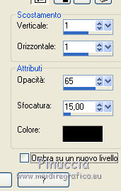 qui puoi trovare qualche risposta ai tuoi dubbi. Se l'argomento che ti interessa non è presente, ti prego di segnalarmelo. Occorrente: Un tube a scelta. Il resto del materiale qui Il tube è mio da un'immagine trovata in rete. Il materiale scrap fa parte del kit Blessed di http://inzpiredcreationzfreebiez.blogspot.nl/search/label/FREEBIEInzpired Creationz ![]() 1. Apri una nuova immagine bianca 700 x 700 pixels. ![]() 2. Apri Grapevine e vai a Modifica>Copia. Torna al tuo lavoro e vai a Modifica>Incolla come nuovo livello. Effetti>Effetti 3D>Sfalsa ombra, colore nero. ![]() 3. Apri Altar e vai a Modifica>Copia. Torna al tuo lavoro e vai a Modifica>Incolla come nuovo livello. Spostalo un po' più in alto.4. Apri Grass e vai a Modifica>Copia. Torna al tuo lavoro e vai a Modifica>Incolla come nuovo livello. Spostalo in basso e un po' più a sinistra.Effetti>Effetti 3D>Sfalsa ombra, con i settaggi precedenti. 5. Apri il tuo tube e vai a Modifica>Copia. Torna al tuo lavoro e vai a Modifica>Incolla come nuovo livello. Posiziona il tube come preferisci,e cancella eventuali parti del tube che non devono vedersi.Effetti>Effetti 3D>Sfalsa ombra, con i settaggi precedenti. 6. Apri house e vai a Modifica>Copia. Torna al tuo lavoro e vai a Modifica>Incolla come nuovo livello. Spostalo in basso a destra.![]() Effetti>Effetti 3D>Sfalsa ombra, con i settaggi precedenti. 7. Apri Ivy1 e vai a Modifica>Copia. Torna al tuo lavoro e vai a Modifica>Incolla come nuovo livello. Spostalo in basso.Effetti>Effetti 3D>Sfalsa ombra, con i settaggi precedenti. 8. Apri Jars e vai a Modifica>Copia. Torna al tuo lavoro e vai a Modifica>Incolla come nuovo livello. Spostalo in basso a sinistra.Effetti>Effetti 3D>Sfalsa ombra, con i settaggi precedenti. 9. Apri bierpul e vai a Modifica>Copia. Torna al tuo lavoro e vai a Modifica>Incolla come nuovo livello. Immagine>Rifletti. Modifica>Incolla come nuovo livello. Immagine>Ridimensiona, al 120%, tutti i livelli non selezionato. Posiziona i due bicchieri in basso a sinistra.Effetti>Effetti 3D>Sfalsa ombra, con i settaggi precedenti. Porta il livello del boccale più piccolo in cima ai livelli. ![]() 10. Opzionale (dipende dal tube che stai usando). Modifica>Incolla come nuovo livello (il tube del boccale è ancora in memoria). Cancella il manico del boccale,e spostalo nella mano del tube.Livelli>Duplica, e posiziona questo tube nell'altra mano.Effetti>Effetti 3D>Sfalsa ombra, con i settaggi precedenti. 11. Aggiungi il tuo nome e/o il tuo watermark su un nuovo livello. Per il mio testo ho usato il font Scriptorama Hostess JF 12. Livelli>Unisci>Unisci tutto e salva in formato jpg. ![]() Se hai problemi o dubbi, o trovi un link non funzionante, o anche soltanto per un saluto, scrivimi. |