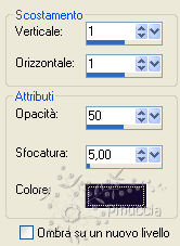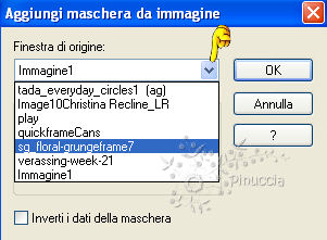 qui puoi trovare qualche risposta ai tuoi dubbi. Se l'argomento che ti interessa non è presente, ti prego di segnalarmelo. Occorrente: Materiale qui Il tube usato è di Lori Rhae. Lo scrapkit è di Kiereweed Apri tutto il materiale in PSP, compresa la maschera. Apri una nuova immagine BIANCA 600 x 600 pixels. Attiva Verassingzip (lo scrapkit), che ha tutti i livelli chiusi. Chiudi il livello del watermark e attiva il livello BG-05. Modifica>Copia. Torna alla tua immagine bianca e vai a Modifica>incolla come nuovo livello. Livelli>Nuovo livello maschera>Da immagine: apri il menu sotto la finestra di origine e vedrai la lista dei files aperti. ![]() Seleziona la maschera sg_floral-grungeframe7, con i seguenti settaggi: ![]() Effetti>Effetti di bordo>Aumenta. Livelli>Unisci>Unisci gruppo. Apri QuickframeCans e vai a Modifica>Copia. Torna al tuo lavoro e vai a Modifica>Incolla come nuovo livello. Attiva lo scrapkit e posizionati sul livello "Zon". Modifica>Copia. Torna al tuo lavoro e vai a Modifica>Incolla come nuovo livello. Sposta il sole in alto a sinistra.Effetti>Effetti 3D>sfalsa ombra, con i seguenti settaggi, colore nero. ![]() Attiva lo scrapkit e posizionati sul livello "Boom2". Modifica>Copia. Torna al tuo lavoro e vai a Modifica>Incolla come nuovo livello. Sposta l'albero a sinistra, un po' più in alto.Effetti>Effetti 3D>sfalsa ombra, con i settaggi precedenti. Attiva lo scrapkit e posizionati sul livello "Boom3". Modifica>Copia. Torna al tuo lavoro e vai a Modifica>Incolla come nuovo livello. Sposta l'albero a sinistra, un po' più in basso.Effetti>Effetti 3D>sfalsa ombra, con i settaggi precedenti. Apri Tada-everyday-circles1 e vai a Modifica>Copia. Torna al tuo lavoro e vai a Modifica>Incolla come nuovo livello. Apri Play e vai a Modifica>copia. Torna al tuo lavoro e vai a Modifica>Incolla come nuovo livello. Spostalo in basso a sinistra.Effetti>Effetti 3D>sfalsa ombra, con i settaggi precedenti. Apri il tube della donna e vai a Modifica>copia. Torna al tuo lavoro e vai a Modifica>Incolla come nuovo livello. Posiziona sopra la parola Play, come se vi fosse sdraiata.![]() Effetti>Effetti 3D>sfalsa ombra, con i settaggi precedenti. Se stai usando un altro tube, sposta questo livello sotto il livello di Play Attiva lo scrapkit e posizionati sul livello "Vogel". Modifica>Copia. Torna al tuo lavoro e vai a Modifica>Incolla come nuovo livello. Immagine>ridimensiona, all'85%, tutti i livelli non selezionato, ricampionamento bicubica. ![]() Ripeti 6 volte. Posiziona l'uccello sopra la lettera "P".Effetti>Effetti 3D>sfalsa ombra, con i settaggi precedenti. Livelli>Unisci>Unisci tutto. Aggiungi il tuo nome e/o il tuo watermark. Per il mio testo ho usato il font Obette Script SSK Per questo esempio ho usato un tube di Gina ![]()