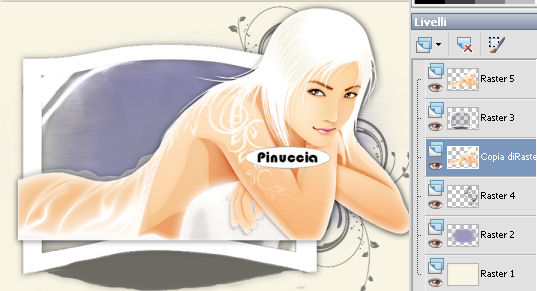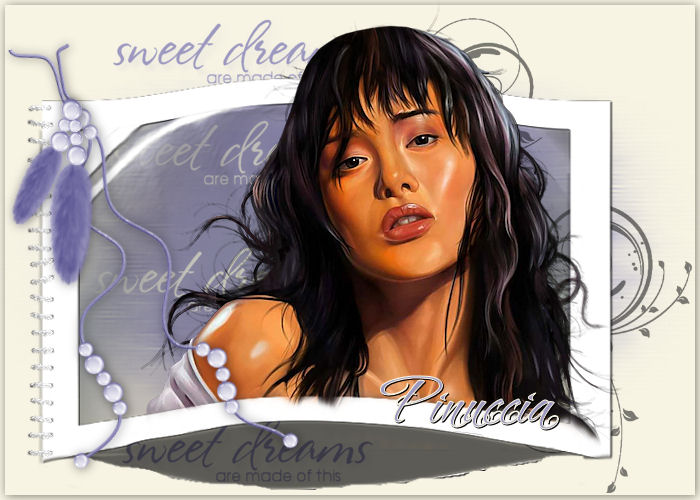 qui puoi trovare qualche risposta ai tuoi dubbi. Se l'argomento che ti interessa non è presente, ti prego di segnalarmelo. Occorrente: Materiale qui I tubes sono di Yoka Se non vuoi sentire la musica premi il tasto ESC Metti il pennello nella cartella Pennelli. Attenzione, il pennello è composto da due files che non devono essere separati. Vedi gli appunti sui pennelli qui. Apri il resto del materiale in PSP. Apri una nuova immagine trasparente 700 x 500 pixels, e riempila con il colore #f7f4e4.Selezione>Seleziona tutto. Selezione>Modifica>Contrai - 5 pixels. Effetti>Effetti 3D>sfalsa ombra, con i seguenti settaggi, colore nero. ![]() Selezione>Deseleziona. Apri Back sweetdreams e vai a Modifica>Copia. Torna al tuo lavoro e vai a Modifica>Incolla come nuovo livello. Apri White Bent with glass e vai a Modifica>Copia. Torna al tuo lavoro e vai a Modifica>Incolla come nuovo livello. Spostalo a sinistra e un po' più in basso.Effetti>Effetti 3D>Sfalsa ombra, con i settaggi precedenti. ![]() Apri Doodle e vai a Modifica>Copia. Torna al tuo lavoro e vai a Modifica>Incolla come nuovo livello. Spostalo a destra.Livelli>Disponi>Sposta giù. Attiva il livello superiore. Apri il tube Yoka-vector-girl e vai a Modifica>Copia. Torna al tuo lavoro e vai a Modifica>Incolla come nuovo livello. Spostalo a sinistra e un po' più in su.Effetti>Effetti 3D>Sfalsa ombra, con i settaggi precedenti. Livelli>Duplica, e sposta questo livello sotto il ivello Raster 3 (il livello con la cornice). ![]() Attiva nuovamente il livello superiore. Attiva lo strumento Gomma ![]() e cancella con cautela la parte di tube sulla cornice. Attiva il livello inferiore del tube e cancella quello che è rimasto visibile sotto la cornice. Attiva nuovamente il livello superiore. Apri Stitch e vai a Modifica>Copia. Torna al tuo lavoro e vai a Modifica>Incolla come nuovo livello. Sposta la cucitura a sinistra.Apri beads e vai a Modifica>Copia. Torna al tuo lavoro e vai a Modifica>Incolla come nuovo livello. Sposta il tube a sinistra.Apri Feathers e vai a Modifica>Copia. Torna al tuo lavoro e vai a Modifica>Incolla come nuovo livello. Sposta il tube a sinistra.Livelli>Nuovo livello raster. Attiva lo strumento Pennello ![]() Cerca e seleziona il pennello agi_wb_sweetdreams, e applicalo in alto e in basso con il colore #9c98bf, al centro un paio di volte con il colore #f7f4e4 (vedi il mio esempio). ti consiglio di aggiungere un nuovo livello ogni volta che applichi il pennello. In questo modo, se necessario, potrai spostare i pennelli singolarmente Livelli>Unisci>Unisci tutto. Aggiungi il tuo nome e/o il tuo watermark. Per il mio testo ho usato il font Caramel Crunch ![]() Se hai problemi o dubbi, o trovi un link non funzionante, o anche soltanto per un saluto, scrivimi.