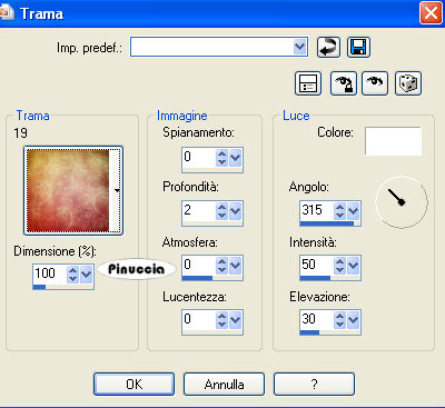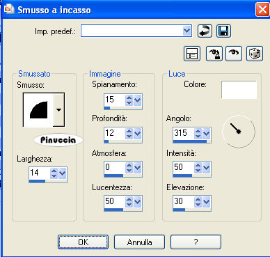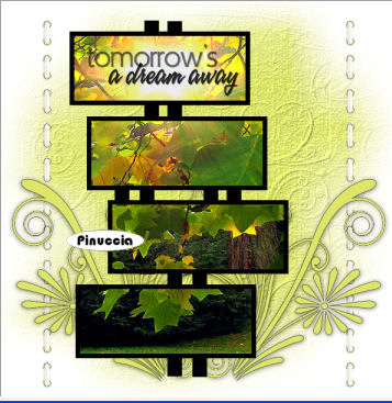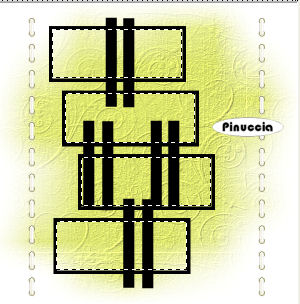qui puoi trovare qualche risposta ai tuoi dubbi. Se l'argomento che ti interessa non è presente, ti prego di segnalarmelo. Occorrente: Materiale qui Metti la trama nella cartella Trame e apri il testo del materiale in PSP. Apri il template. Questo sarà la base del tuo lavoro. Elimina il livello del watermark. Immagine>Ruota a sinistra. se stai usando PSP 9: Immagine>Ruota>Ruota di 90° in senso antiorario. Attiva il livello inferiore bianco (bg). ![]() Livelli>Nuovo livello raster. Imposta il colore di sfondo con #dde669 o con un colore scelto dal tube. Riempi con il colore di sfondo.Livelli>Nuovo livello maschera>Da immagine: Apri il menu sotto la finestra di origine e vedrai la lista dei files aperti. Seleziona la maschera 179.jpg: ![]() Livelli>Unisci>Unisci gruppo. Effetti>effetti di trama>Trama - seleziona la trama 19, con i seguenti settaggi: ![]() Apri "Stitching" e vai a Modifica>copia. Torna al tuo lavoro e vai a Modifica>Incolla come nuovo livello. E' già correttamente posizionato. Non occorre spostarlo. Attiva il livello Frame 4. ![]() Attiva lo strumento Bacchetta magica ![]() ![]() e clicca nella parte interna della cornice superiore per selezionarla. ![]() Premi sulla tastiera il tasto CANC. Lascia selezionato e attiva il livello frame3. Clicca con la bacchetta magica all'interno della cornice e premi il tasto CANC. Attiva il livello Frame2, clicca con la bacchetta magica e premi il tasto CANC. Attiva il livello Fram1, clicca con la bacchetta magica e premi il tasto CANC. Dovresti avere questo. ![]() Livelli>Nuovo livello raster. Apri il file di sfondo "Trees" e vai a Modifica>Copia. Torna al tuo lavoro e vai a Modifica>Incolla nella selezione. Selezione>Deseleziona. Nella paletta dei livelli sposta questo livello sotto quello delle cornici. ![]() Attiva nuovamente il livello Frame 4. Effetti>effetti 3D>Smusso a incasso: ![]() Effetti>Effetti 3D>Sfalsa ombra, con i seguenti settaggi, colore nero. ![]() Ripeti entrambi gli effetti Smusso a incasso e Sfalsa ombre per le altre tre cornici. Apri "SS Imagine doodleART" e vai a Modifica>copia. Torna al tuo lavoro e vai a Modifica>Incolla come nuovo livello. Sposta il tube in basso e a destra.Nella paletta dei livelli trascina questo livello sotto il livello "horiz stripes". Effetti>Effetti 3D>Sfalsa ombra, con i settaggi precedenti. Livelli>Duplica. Immagine>Rifletti. Attiva il livello superiore. Apri il file con il testo "cd JCroce tomorrow image" e vai a Modifica>copia. Torna al tuo lavoro e vai a Modifica>Incolla come nuovo livello. Sposta il testo nella cornice superiore.![]() Apri il tube e vai a Modifica>Copia. Torna al tuo lavoro e vai a Modifica>Incolla come nuovo livello. Sposta il tube un po' più a destra.Effetti>Effetti 3D>Sfalsa ombra, con i settaggi precedenti. Apri "element" e vai a Modifica>copia. Torna al tuo lavoro e vai a Modifica>Incolla come nuovo livello. Spostalo a sinistra.Aggiungi il tuo nome e/o il tuo watermark. Per il mio testo ho usato il font Andes. Livelli>Unisci>Unisci tutto e salva in formato jpg. ![]() Il tube usato per questo esempio è di Dragonblu ![]() Se hai problemi o dubbi, o trovi un link non funzionante, o anche soltanto per un saluto, scrivimi. 27 Marzo 2009 |