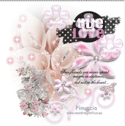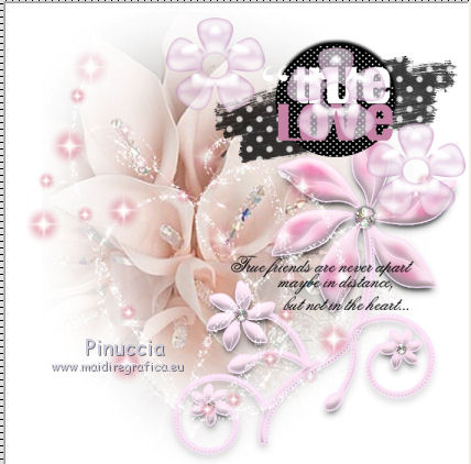qui puoi trovare qualche risposta ai tuoi dubbi. Se l'argomento che ti interessa non è presente, ti prego di segnalarmelo. Occorrente: Un tube a scelta. Il resto del materiale qui Il tube è di Maryse. ![]() 1. Apri una nuova immagine bianca 700 x 700 pixels. ![]() 2. Apri flowerback e vai a Modifica>Copia. Torna al tuo lavoro e vai a Modifica>Incolla come nuovo livello. Apri flowerdoodle e vai a Modifica>Copia. Torna al tuo lavoro e vai a Modifica>Incolla come nuovo livello. Spostalo in basso a destra.![]() 3. Apri stars e vai a Modifica>Copia. Torna al tuo lavoro e vai a Modifica>Incolla come nuovo livello. 4. Apri truelove e vai a Modifica>Copia. Torna al tuo lavoro e vai a Modifica>Incolla come nuovo livello. Spostalo in alto a destra.![]() 5. Apri glassflowers e vai a Modifica>Copia. Torna al tuo lavoro e vai a Modifica>Incolla come nuovo livello. Spostalo in alto a destra.![]() 6. Apri wordart e vai a Modifica>Copia. Torna al tuo lavoro e vai a Modifica>Incolla come nuovo livello. Spostalo a destra e un po' più in basso.![]() 7. Apri vlinder, e vai a Modifica>Copia. Torna al tuo lavoro e vai a Modifica>Incolla come nuovo livello. Sposta il tube dove preferisci, o vedi il mio esempio.8. Apri vd80moro e vai a Modifica>Copia. Torna al tuo lavoro e vai a Modifica>Incolla come nuovo livello. Spostalo in basso a sinistra.![]() 9. Apri il tuo tube e vai a Modifica>Copia. Torna al tuo lavoro e vai a Modifica>Incolla come nuovo livello. Immagine>Ridimensiona, se e quanto necessario, tutti i livelli non selezionato. Spostalo a sinistra.10. Effetti>Effetti 3D>Sfalsa ombra, colore nero. ![]() 11. Aggiungi il tuo nome e/o il tuo watermark su un nuovo livello. Per il mio testo ho usato il font Curly Joe 12. Livelli>Unisci>Unisci tutto e salva in formato jpg. Per questo esempio ho usato un tube di Min@ ![]() ![]() Le vostre versioni.Grazie ![]() Santina ![]() Se hai problemi o dubbi, o trovi un link non funzionante, o anche soltanto per un saluto, scrivimi. |