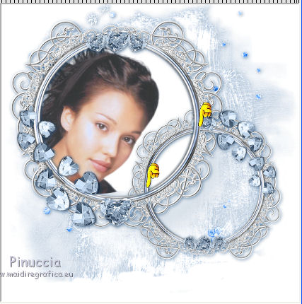 qui puoi trovare qualche risposta ai tuoi dubbi. Se l'argomento che ti interessa non è presente, ti prego di segnalarmelo. Occorrente: Un tube a scelta. Il resto del materiale qui Il tube è di Celeste. ![]() 1. Apri una nuova immagine bianca 700 x 700 pixels. ![]() 2. Apri back e vai a Modifica>Copia. Torna al tuo lavoro e vai a Modifica>Incolla come nuovo livello. 3. Apri frame 1 e vai a Modifica>Copia. Torna al tuo lavoro e vai a Modifica>Incolla come nuovo livello. Sposta la cornice in alto,in modo da "inquadrare" la parte bianca dello sfondo. ![]() 4. Attiva lo strumento Selezione , cerchio,e traccia un cerchio all'interno della cornice. ![]() Livelli>Nuovo livello raster. Livelli>Disponi>Sposta giù. 5. Apri il tuo tube. Immagine>Rifletti. Con lo strumento Selezione a mano libera, seleziona il viso.Modifica>Copia e minimizzalo perchè ti servirà ancora. Torna al tuo lavoro e vai a Modifica>Incolla nella selezione. Selezione>Deseleziona. Abbassa l'opacità di questo livello all'80%. 6. Attiva nuovamente il livello superiore. Apri frame 2 e vai a Modifica>Copia. Torna al tuo lavoro e vai a Modifica>Incolla come nuovo livello. Sposta questa cornice a destra e un po' più in basso,in modo da incastrare la prima cornice nei fori della seconda. ![]() 7. Apri blue tree e vai a Modifica>Copia. Torna al tuo lavoro e vai a Modifica>Incolla come nuovo livello. Spostalo a sinistra.8. Apri wintercluster e vai a Modifica>Copia. Torna al tuo lavoro e vai a Modifica>Incolla come nuovo livello. Spostalo in basso a sinistra.![]() 9. Attiva nuovamente il tuo tube. Selezione>Deseleziona. Immagine>Rifletti. Modifica>Copia. Torna al tuo lavoro e vai a Modifica>Incolla come nuovo livello. Spostalo a destra.Effetti>Effetti 3D>Sfalsa ombra, colore nero. ![]() 10. Aggiungi il tuo nome e/o il tuo watermark. Per il mio testo ho usato il font Frosting for breakfast 11. Livelli>Unisci>Unisci tutto e salva in formato jpg. ![]() Le vostre versioni. Grazie ![]() Nanette ![]() Se hai problemi o dubbi, o trovi un link non funzionante, o anche soltanto per un saluto, scrivimi. |