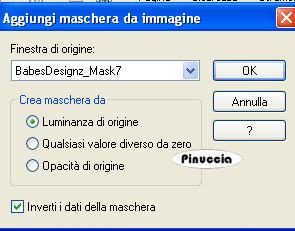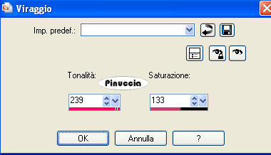 qui puoi trovare qualche risposta ai tuoi dubbi. Se l'argomento che ti interessa non è presente, ti prego di segnalarmelo. Occorrente: Lo scrapkit Pink X-mas mini di Seachell's Scrapz che trovi qui http://seachellscrapz.blogspot.com/ Il resto del materiale qui Il template è di Sonel (il suo blog non esiste più) Il tube è di Jet. Apri il materiale in PSP, compresa la maschera. Apri il template, che sarà la base del tuo lavoro. Elimina i livelli "logo", "bee colour", "bee-no colour" e "square blocks". Attiva il livello inferiore bianco. Livelli>Nuovo livello raster. Riempi il l ivello con un colore scelto dallo scrapkit.Il mio #e4aac1. Livelli>Nuovo livello maschera>Da immagine. Apri il menu sotto la finestra di origine e vedrai la lista dei files aperti. Tra questi la maschera. Seleziona la maschera BabesDesignz_Mask7, con i seguenti settaggi: ![]() Livelli>Unisci>Unisci gruppo. Rimani su questo livello. Dallo scrapkit apri element17 e vai a Modifica>Copia. Torna al tuo lavoro e vai a Modifica>Incolla come nuovo livello. Sposta il tube in alto a destra.Livelli>Duplica. Immagine>Capovolgi. Attiva il livello Ivi Leaves-colour. Regola>Tonalità e saturazione>Viraggio: ![]() Attiva il livello Leaves-no colour. Ripeti il Viraggio con gli stessi settaggi. Attiva il livello Circle. Selezione>Seleziona tutto. Selezione>Mobile. Selezione>Immobilizza. Dallo scrapkit apri Paper3 e vai a Modifica>Copia. Torna al tuo lavoro e vai a Modifica>Incolla nella selezione. Selezione>Deseleziona. Attiva il livello Small Circles. Dallo scrapkit apri element16 e vai a Modifica>Copia. Torna al tuo lavoro e vai a Modifica>Incolla come nuovo livello. Sposta l'elemento in basso a sinistra, esattamente sopra il cerchio.Dallo scrapkit apri element7 e vai a Modifica>Copia. Torna al tuo lavoro e vai a Modifica>Incolla come nuovo livello. Sposta l'elemento in basso a sinistra, al centro della palla.Effetti>Effetti 3D>Sfalsa ombra, con il colore nero. ![]() Attiva il livello Wordart. Selezione>Seleziona tutto. Selezione>Mobile. Selezione>Immobilizza. Dallo scrapkit apri paper2 e vai a Modifica>copia. Torna al tuo lavoro e vai a Modifica>Incolla nella selezione. Effetti>Effetti 3D>Sfalsa ombra, con i settaggi precedenti. Selezione>Deseleziona. Dallo scrapkit apri element6 e vai a Modifica>copia. Torna al tuo lavoro e vai a Modifica>Incolla come nuovo livello. Immagine>Ridimensiona, all'85%, tutti i livelli non selezionato. ![]() Sposta l'albero a destra.Effetti>Effetti 3D>Sfalsa ombra, con i settaggi precedenti. Apri il tube della donna e vai a Modifica>Copia. Torna al tuo lavoro e vai a Modifica>Incolla come nuovo livello. Sposta il tube un po' più a destra.Attiva lo strumento Gomma e cancella la parte del tube che non deve essere visibile.Effetti>Effetti 3D>Sfalsa ombra, con i settaggi precedenti. Apri pink leaves e vai a Modifica>Copia. Torna al tuo lavoro e vai a Modifica>Incolla come nuovo livello. Sposta il tube in basso a destra.Dallo scrapkit apri element12 e vai a Modifica>copia. Torna al tuo lavoro e vai a Modifica>Incolla come nuovo livello. Immagine>Ridimensiona, 2 volte all'85%, tutti i livelli non selezionato. Sposta il fiocco sulla pallina sopra quello preesistente.Effetti>Effetti 3D>Sfalsa ombra, con i settaggi precedenti. Aggiungi il tuo nome e/o il tuo watermark su un nuovo livello. Livelli>Unisci>Unisci tutto e salva in formato jpg. ![]() ![]() Se hai problemi o dubbi, o trovi un link non funzionante, o anche soltanto per un saluto, scrivimi.