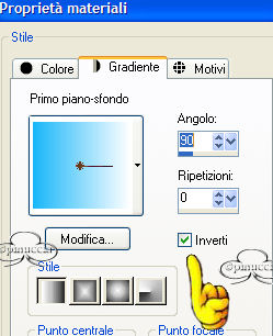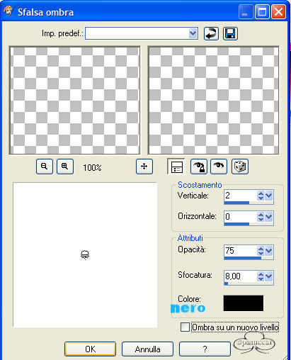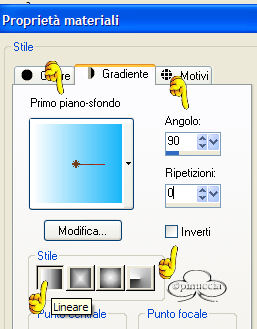 qui puoi trovare qualche risposta ai tuoi dubbi. Se l'argomento che ti interessa non è presente, ti prego di segnalarmelo. Occorrente: Filtro FM Tile Tools La maschera usata viene dal sito di Cris Taylor. Materiale qui Metti la maschera nella cartella Maschere e apri il resto del materiale in PSP. Imposta il bianco come colore di primo piano e un colore chiaro (io ho scelto #19b7f9) per il colore di sfondo Crea un gradiente di primo piano/sfondo, con i seguenti settaggi. ![]() Il blu deve trovarsi a destra. Apri una nuova immagine trasparente 600 x 400 pixels. Riempi la tela con il gradiente.Livelli>Nuovo livello raster. Inverti il gradiente, il blu deve stare a sinistra. ![]() Livelli>Carica/Salva maschera>Carica maschera da disco. Cerca la maschera CrisTaylor_m12, inverti trasparenza selezionato. ![]() Livelli>Unisci>Unisci gruppo. Effetti>Plugins>FM TileTools - Blend Emboss, con i settaggi standard: ![]() Effetti>Effetti di bordo>Aumenta. Effetti>Effetti 3D>Sfalsa ombra, con i seguenti settaggi: ![]() Apri il tube Snakesummer e vai a Modifica>Copia. Torna al tuo lavoro. Posizionati sul livello inferiore (raster 1) e vai a Modifica>Incolla>Incolla come nuovo livello. Il tube è già nella corretta posizione. Posizionati sul livello superiore. Apri il tube Snakerand4 e vai a Modifica>Copia. Torna al tuo lavoro e vai a Modifica>Incolla>Incolla come nuovo livello. Metti in alto a sinistra, nella striscia. Effetti>Effetti 3D>Sfalsa ombra, con i settaggi precedenti. Livelli>Duplica. Immagine>Rifletti. Immagine>Capovolgi. Livelli>Unisci>Unisci visibile. Immagine>Ruota>Ruota di 90 gradi in senso antiorario. Attiva lo strumento Testo ![]() Io ho usato il font Odalisque, con questi settaggi: ![]() Scrivi il tuo nome e sistemalo in posizione. Nella paletta dei livelli Converti in livello raster. Effetti>Effetti 3D>Sfalsa ombra, con i settaggi precedenti. Immagine>Ruota>Ruota di 90 gradi in senso orario. Adesso aggiungi un testo anche a sinistra. Immagine>Ruota>Ruota di 90 gradi in senso orario. Scrivi il testo Summer Blue, o quello che preferisci. Mettilo in posizione. Nella paletta dei livelli Converti in livello raster. Effetti>Effetti 3D>Sfalsa ombra, con i settaggi precedenti. Immagine>Ruota>Ruota di 90 gradi in senso antiorario. Adesso il tocco finale. Apri il file SnakeNecklace e vai a Modifica>Copia. Torna al tuo lavoro e vai a Modifica>Incolla>Incolla come nuovo livello. Posizionalo a sinistra, contro il bordo (vedi tag finale). Effetti>Effetti 3D>Sfalsa ombra, con i settaggi precedenti. Livelli>Unisci>Unisci tutto. ![]() Se hai problemi o dubbi, o trovi un link non funzionante, o anche soltanto per un saluto, scrivimi. Maggio 2006 |