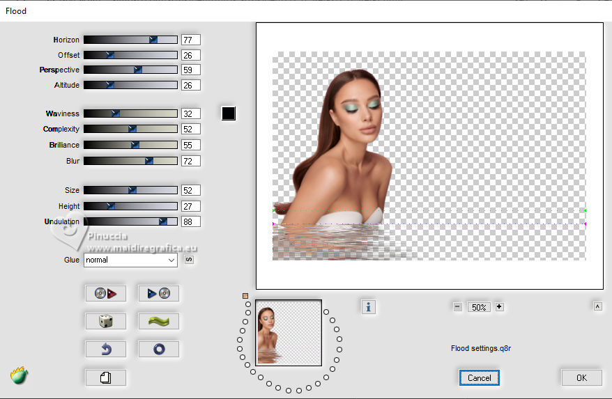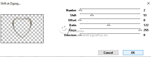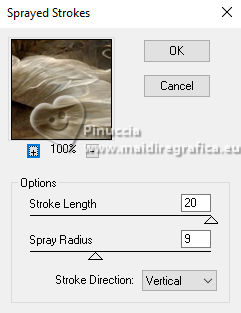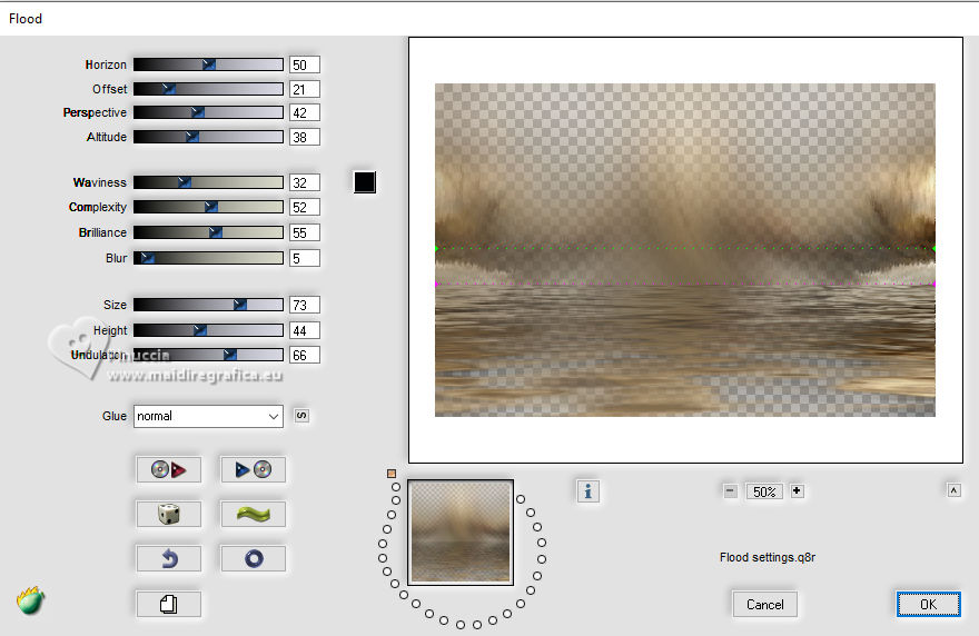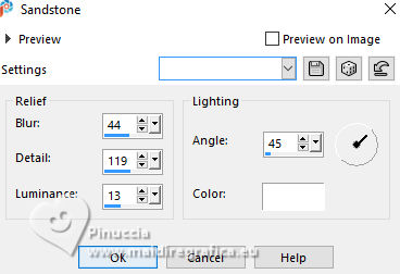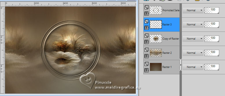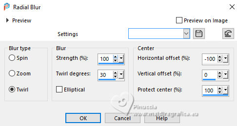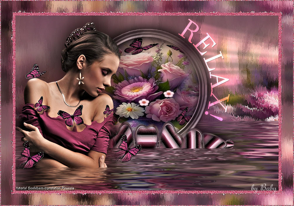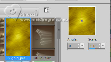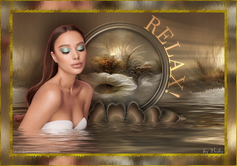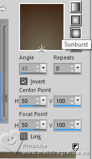 For this tutorial, you will need: ![]() Thank for the tubes PqnaAlice . The rest of the material is by Soxikibem. (The links of the tubemakers here). ![]() consult, if necessary, my filter section here Filters Unlimited 2.0 here Brush Strokes - Sprayed Strokes here Mura's Seamless - Shift at zigzag here Mura's Meister - Copies here Flaming Pear - Flood here Simple - Top Bottom Wrap (bonus) here Filters Mura's Seamless and Seample can be used alone or imported into Filters Unlimited. (How do, you see here) If a plugin supplied appears with this icon ![]() You can change Blend Modes according to your colors. In the newest versions of PSP, you don't find the foreground/background gradient (Corel_06_029). You can use the gradients of the older versions. The Gradient of CorelX here ![]() Open the pattern 66gold_pracken in PSP and minimize it with the rest of the material. 1. Choose 2 colors from your material. Foreground color #3c2110, background color #746e5b ![]() We'll use also the pattern 66gold_pracken ![]() Set your foreground color to a Foreground/Background Gradient, style Sunburst. ![]() 2. Open a new transparent image 900 x 600 pixels. Flood Fill the transparent image with your Gradient.3. Layers>New Raster Layer. Selections>Select All. Open the floral misted 182FlorByPqnaAlice ![]() Erase the watermark and go to Edit>Copy. Go back to your work and go to Edit>Paste Into Selection. Selections>Select None. 4. Effects>Image Effects>Seamless Tiling - Side by side. ![]() 5. Adjust>Blur>Radial Blur. ![]() 6. Layers>Duplicate. Image>Mirror>Mirror Horizontal. Layers>Merge>Merge Down. 7. Effects>Plugins>Brush Strokes - Sprayed Strokes. ![]() Edit>Repeat Sprayed Strokes. Effects>Edge Effects>Enhance. 8. Layers>Duplicate. Effects>Geometric Effects>Circle. ![]() Image>Resize, to 70%, resize all layers not checked. Activate your Magic Wand Tool , tolerance and feather 0,and click outside the circle ![]() Selections>Invert, and the circle will be selected. ![]() 9. Layers>New Raster Layer. Edit>Paste into Selection (the misted is still in memory). Adjust>Sharpness>Sharpen. 10. Layers>Merge>Merge Down. Selections>Modify>Select Selection Borders. ![]() 11. Adjust>Blur>Gaussian Blur - radius 15. ![]() Effects>3D Effects>Inner Bevel. ![]() 12. Selections>Promote Selection to Layer. Selections>Select None. Activate your Magic Wand Tool , tolerance and feather 0,and click in the circle to select it. Layers>New Raster Layer. Effects>3D Effects>Cutout. ![]() 13. Selections>Select None. Layers>Arrange>Move Down. ![]() 14. Activate your top layer, Promoted Selection. Layers>Duplicate. Effects>Plugins>Mura's Seamless - Shift at Zigzag. ![]() 15. Image>Resize, to 30%, resize all layers not checked. Layers>Duplicate. Layers>Merge>Merge Down. Activate again your Magic Wand Tool , tolerance and feather 0,and click in the effect to select it. ![]() Selections>Modify Expand - 2 pixels. 16. Layers>New Raster Layer. Flood Fill the layer with your Gradient.Effects>Texture Effects>Sandstone. ![]() Selections>Select None. 17. Layers>Arrange>Move Down. ![]() Activate your top layer. Layer>Merge>Merge Down. 18. Activate again the layer Promoted Selection. ![]() Layers>Merge>Merge Down - 2 times. ![]() 19. Activate again your top layer. Effects>Plugins>Mura's Meister - Copies. ![]() 20. Effects>Geometric Effects>Circle - same settings. ![]() Pick Tool ![]() keep Position X: 151,00 and set Position Y: 406,00. ![]() Layers>Merge>Merge Down. Effects>3D Effects>Drop Shadow, color black. ![]() Objects>Align>Top. ![]() 21. Activate the layer below, Raster 2. Effects>Plugins>Flaming Pear - Flood ![]() 22. Activate your top layer. Repeat Effects>Plugins>Flaming Pear - Flood. ![]() 23. Open your tube 1001MulherByPqnaAlice ![]() Erase the watermark and go to Edit>Copy. Go back to your work and go to Edit>Paste as New Layer. Image>Resize, if necessary, for the supplied tube 50%, resize all layers not checked. Move the tube to the right side,or Pick Tool ![]() Position X: 0,00 and Position Y: 49,00. ![]() Effects>Plugins>Flaming Pear - Flood ![]() 24. Layers>Duplicate. Adjust>Blur>Gaussian Blur - radius 40. ![]() Change the Blend Mode of this layer to Multiply. Layers>Arrange>Move Down. 25. Open TituloRelax_BySoxikibem ![]() Edit>Copy. Go back to your work and go to Edit>Paste as New Layer. Pick Tool ![]() Position X: 550,00 and Position Y: 4,00. ![]() Change the Blend Mode of this layer to Dodge and reduce the opacity to 80%. ![]() 26. Edit>Copy Special>Copy Merged. Selections>Select All. Image>Add borders, 10 pixels, symmetric, whatever color. Selections>Invert. Set your foreground color to Pattern and select the golden pattern ![]() Flood Fill with your golden pattern.Selections>Select None. 27. Selections>Select All. Image>Add borders, 40 pixels, symmetric, whatever color. Selections>Invert. Edit>Paste Into Selection. 28. Effects>Plugins>Simple - Top Bottom Wrap. This effect works without window: result ![]() Adjust>Blur>Gaussian Blur - radius 10. ![]() 29. Effects>Plugins>Brush Strokes - Sprayed Strokes. ![]() Edit>Repeat Sprayed Strokes. Effects>Edge Effects>Enhance. Selections>Select None. 30. Selections>Select All. Image>Add borders, 3 pixels, symmetric, whatever color. Selections>Invert. Flood Fill with your golden pattern.Selections>Select None. 31. Image>Resize, if you want. Sign you work and save as jpg. For the tubes of this version thanks Luz Cristina and Mentali. ![]() ![]() Your versions. Thanks ![]() Baby ![]() Baby ![]() Jolcsi ![]() Katalin ![]() Yvonne ![]() Lidia ![]() ![]() If you have problems or doubts, or you find a not worked link, or only for tell me that you enjoyed this tutorial, write to me. |