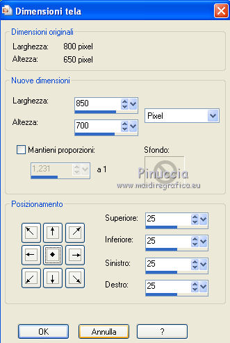 Immagine>Dimensione tela.