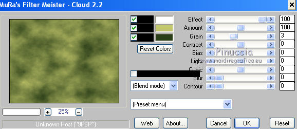 Premere successivamente il tasto Reset serve per cambiare casualmente (ragione per la quale il tuo risultato non potrà essere uguale al mio esempio, l'aspetto delle nuvole.