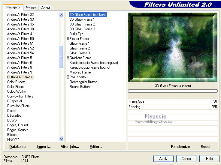 Effetti>Plugins>Filters Unlimited - Buttons and Frames - 3D Glass Frame (sunken)