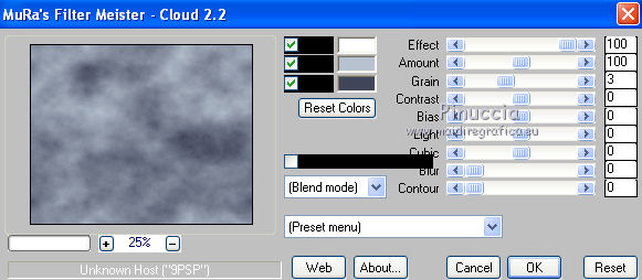 Premere successivamente il tasto Reset serve per cambiare casualmente (ragione per la quale il tuo risultato non potrà essere uguale al mio esempio, l'aspetto delle nuvole.
