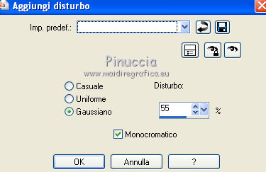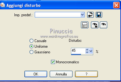 Regola>Aggiungi/Rimuovi disturbo>Aggiungi disturbo, con gli stessi settaggi.
