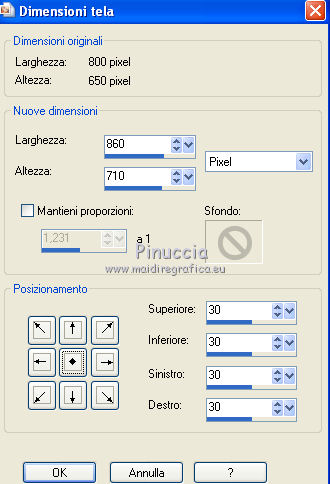 Immagine>Dimensione tela.