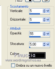 Effetti>Effetti 3D>Sfalsa ombra, con gli ultimi settaggi utilizzati.