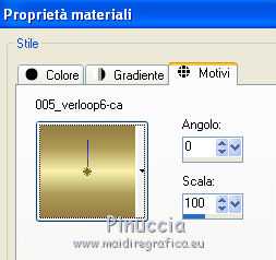 Passa il colore di primo piano a Motivi e seleziona il motivo oro con i seguenti settaggi.