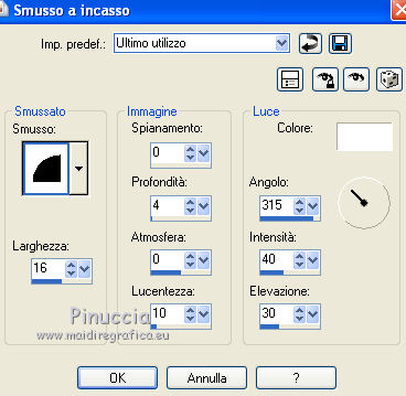 Effetti>Effetti 3D>Smusso a incasso, con i settaggi precedenti.