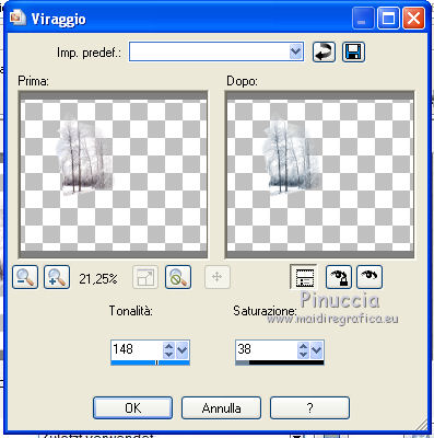 Regola>Tonalità e saturazione>Viraggio, con i settaggi precedenti.