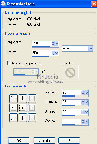 Immagine>Dimensione tela.