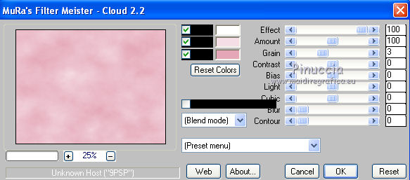 Premere successivamente il tasto Reset serve per cambiare casualmente (ragione per la quale il tuo risultato non potrà essere uguale al mio esempio, l'aspetto delle nuvole.