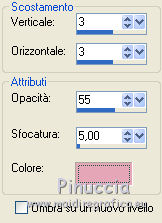 Effetti>Effetti 3D>Sfalsa ombra, con i settaggi precedenti, ma con il colore nero.