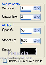 Effetti>Effetti 3D>Sfalsa ombra, con il colore di sfondo (per il mio tube; se stai usando un altro tube, dovrai valutare).