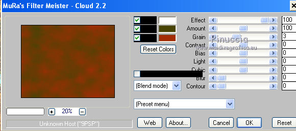 Premere successivamente il tasto Reset serve per cambiare casualmente (ragione per la quale il tuo risultato non potrà essere uguale al mio esempio, l'aspetto delle nuvole.