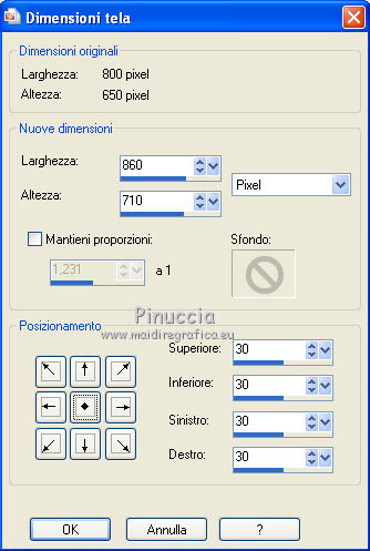 Immagine>Dimensione tela.