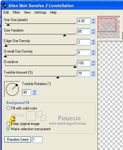 Effetti>Plugins>Alien Skin Xenofex 2.0 - Constellation, con i seguenti settaggi: