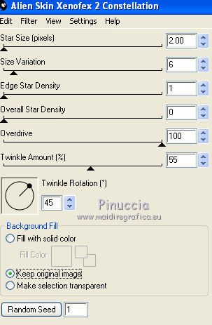 Effetti>Plugins>Alien Skin Xenofex 2.0 - Constellation, clicca su Random Seed e ok.