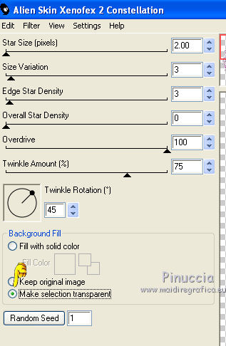 Effetti>Plugins>Alien Skin Xenofex 2.0 - Constellation, clicca su Random Seed e ok.