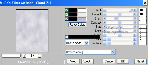 Premere successivamente il tasto Reset serve per cambiare casualmente (ragione per la quale il tuo risultato non potrà essere uguale al mio esempio, l'aspetto delle nuvole.