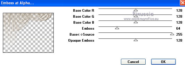 Effetti>Plugins>Mura's Seamless - Emboss at Alpha - 2 volte con i seguenti settaggi.