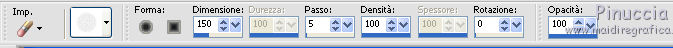 Attiva lo strumento Gomma e seleziona il pennello Bambagia (standard in PSP) con i seguenti settaggi: