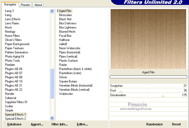 Effetti>Plugins>Filters Unlimited 2.0 - Special Effects 1 - Aged Film.
