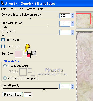 Effetti>Plugins>Alien Skin Xenofex 2.0 - Burnt Edges, e seleziona il colore che hai scelto: