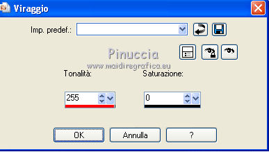 Regola>Tonalità e saturazione>Viraggio, con i settaggi precedenti.