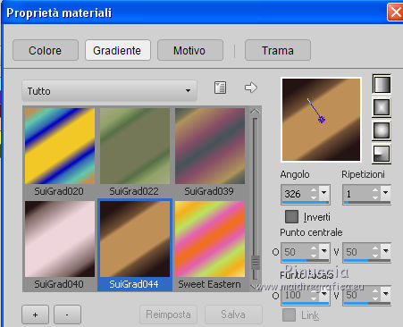 Passa il colore di primo piano a Gradiente, e seleziona il gradiente SuiGrad044, stile Lineare