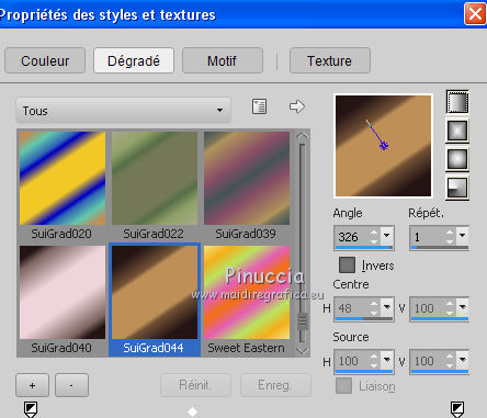 Placer en avant plan Dégradé et sélectionner le dégradé SuiGrad044, style Linéaire