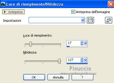 Regola>Luminosità e Contrasto>Luce di riempimento/Nitidezza, con i settaggi precedenti.
