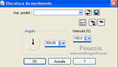 Regola>Sfocatura>Sfocatura da movimento - 2 volte, con i seguenti settaggi.