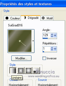 Placer en avant plan le dégradé et sélectionner le dégradé suigrad016, style Linéaire.
