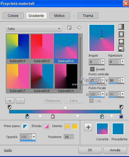 2. Passa il colore di primo piano a Gradiente, e seleziona il gradiente SuiGrad016, stile Radiale.