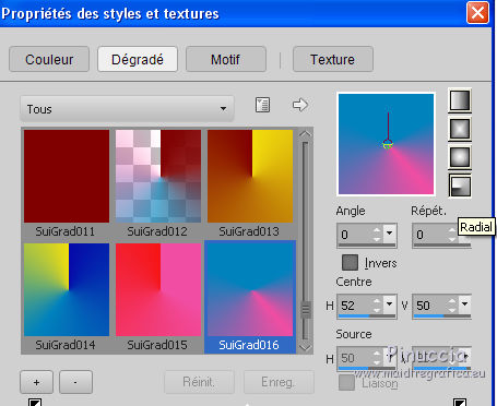 2. Placer en avant plan Dégradé et sélectionner le dégradé SuiGrad016, style Radial.