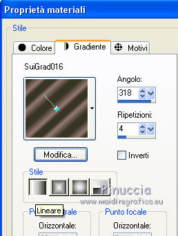 Passa il colore di primo piano a Gradiente e seleziona il gradiente SuiGrad016, stile Lineare.