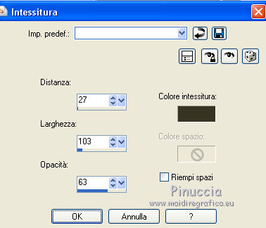 8. Effetti>Effetti di trama>Intessitura - colore intessitura: colore di primo piano.