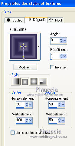 Placer en avant plan le dégradé et Sélectionner le dégradé suigrad016, stile Rectangulaire.