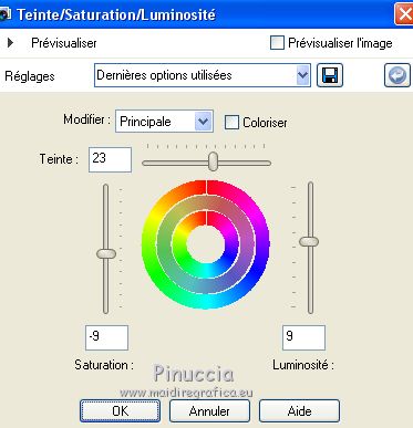 19. Réglage>Teinte et Saturation>Teinte/Saturation/Luminosité.