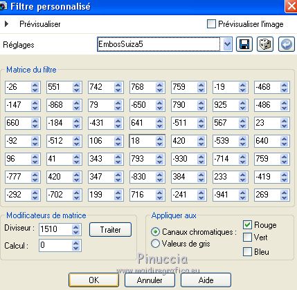 13. Effets>Filtre personnalisé - sélectionner le preset EmbosSuiza5 e ok.