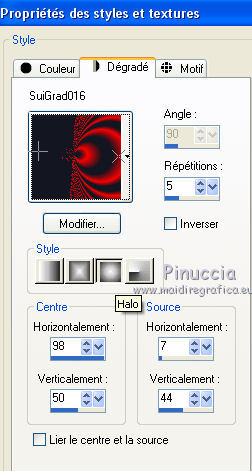 Placer en avant plan le Dégradé et sélectionner le dégradé SuiGrad016, style Halo.