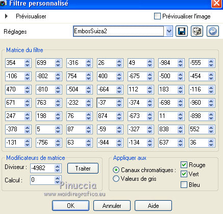 6. Effets>Filtre personnalisé - sélectionner le preset EmbosSuiza2 et ok.