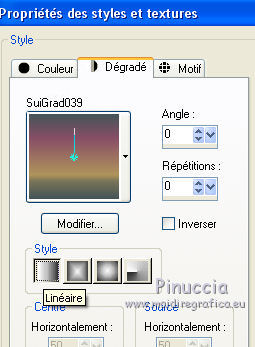 2. Placer en avant plan Dégradé, et sélectionner le dégradé SuiGrad39, style Linéaire.